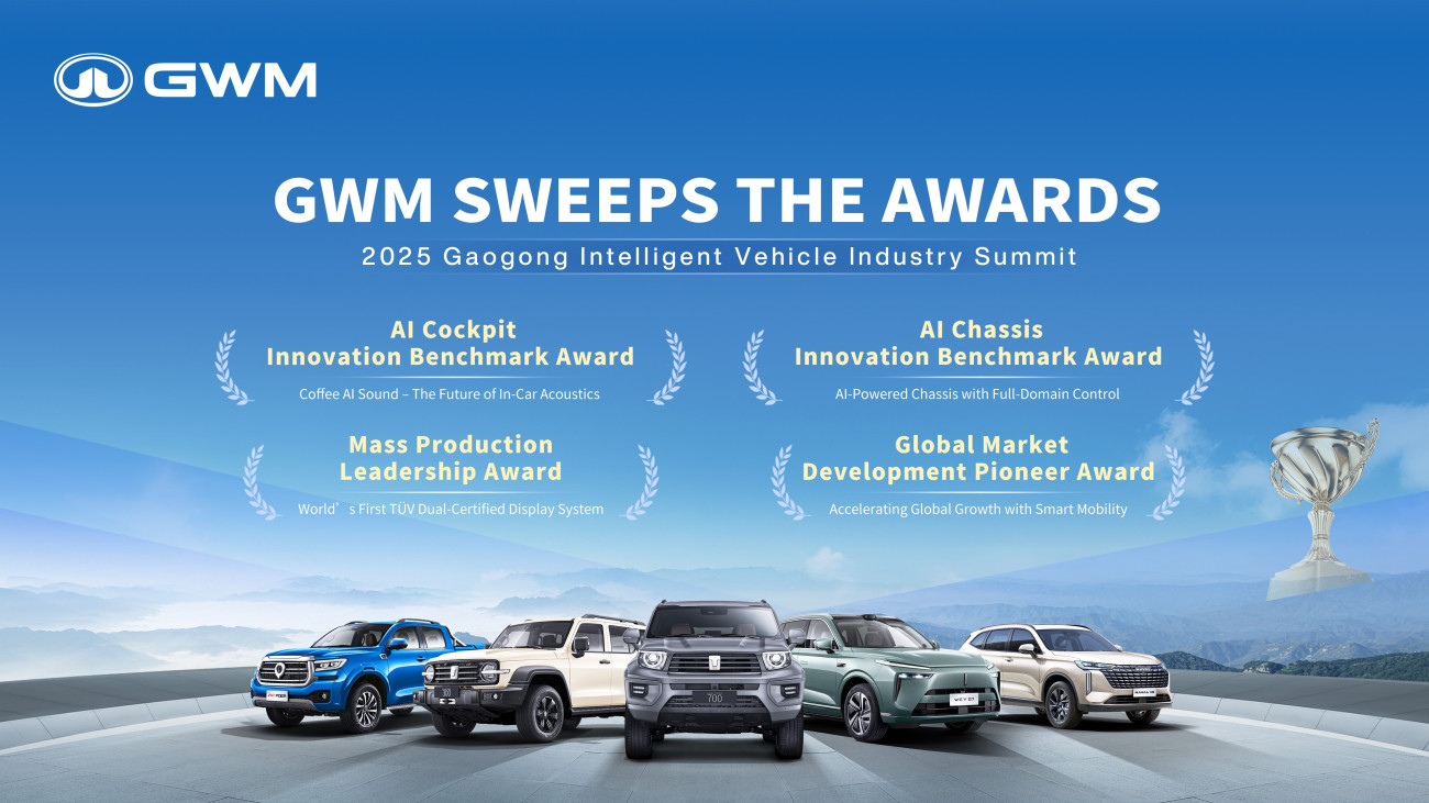 • รางวัลด้านการพัฒนาระดับโลก (2025 Global Market Development Pioneer): จากความสำเร็จของ GWM ในการขยายธุรกิจสู่เวทีสากล ด้วยกลยุทธ์รอบด้านที่ผสานเทคโนโลยีอัจฉริยะ การวิจัยและพัฒนาทั่วโลก และการดำเนินงานเชิงท้องถิ่น ทำให้ GWM สามารถตั้งศูนย์วิจัยและโรงงานผลิตครบวงจรในหลายประเทศ พร้อมยอดขายสะสมทั่วโลกทะลุ 2 ล้านคัน ปัจจุบัน GWM ดำเนินธุรกิจในกว่า 170 ประเทศ และมียอดขายต่างประเทศเติบโตต่อเนื่อง เช่น GWM TANK 300 Hi4-T ที่เปิดตัวในบราซิล GWM POER Hi4-T ที่คว้ารางวัลในออสเตรเลีย GWM P-Series ที่ครองตลาดชิลี และ NEW GWM TANK 300 DIESEL ที่ได้รับความนิยมอย่างสูงในประเทศไทย ความสำเร็จนี้สะท้อนการเปลี่ยนผ่านจากการส่งออกผลิตภัณฑ์ไปสู่การส่งออกระบบนิเวศภายใต้กลยุทธ์ ONE GWM ที่มุ่งสร้างมาตรฐานใหม่ของแบรนด์ยานยนต์คุณภาพของจีนบนเวทีโลก