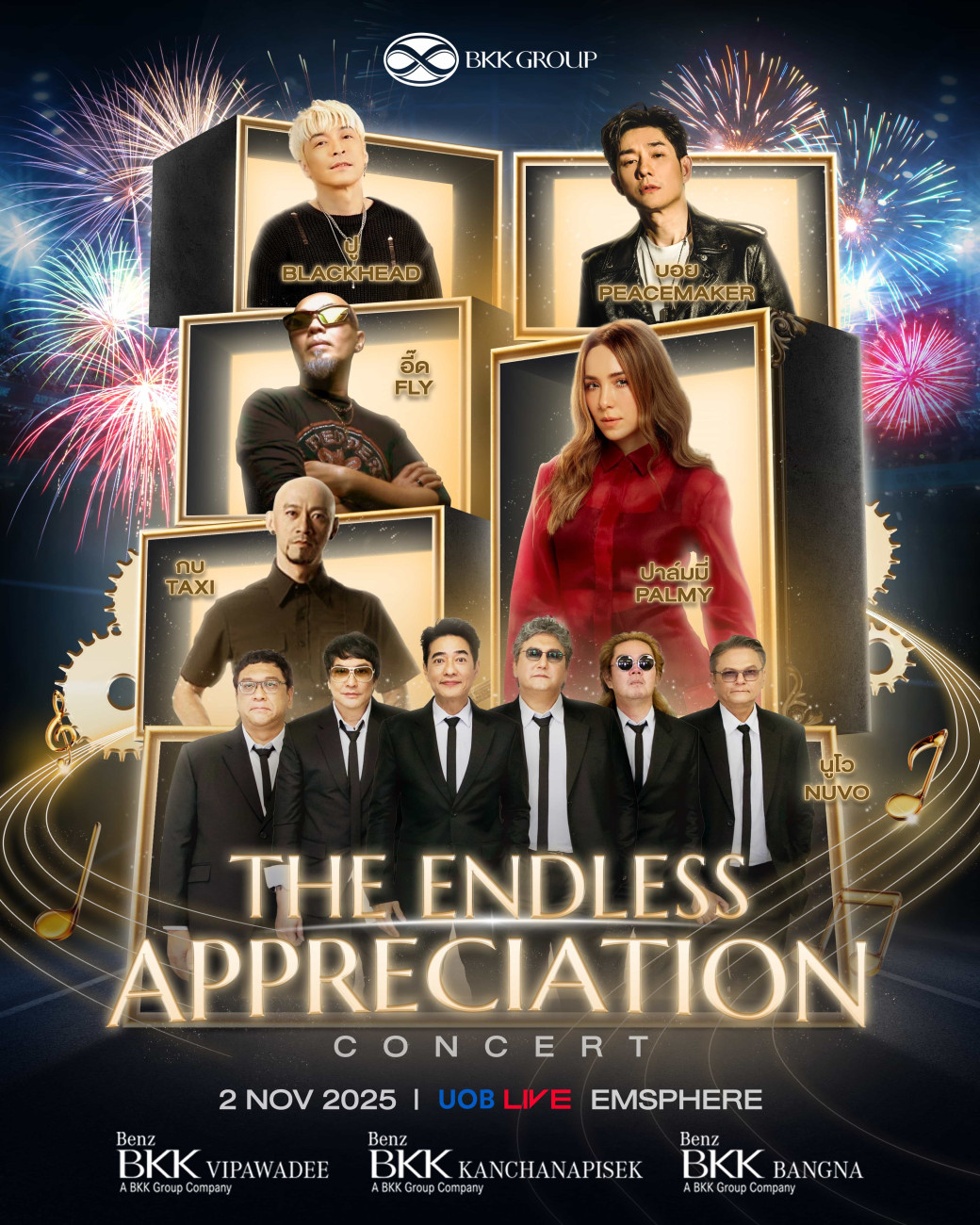 ไฮไลต์กิจกรรมพิเศษแห่งปี “Benz BKK Group : The Endless Appreciation Concert” นำทีมโดยสุดยอดศิลปินระดับแนวหน้ามากมาย อาทิ ปาล์มมี่, นูโว, บอย Peacemaker, กบ Taxi, ปู Blackhead และอี๊ด FLY โดยแต่ละบทเพลงและการแสดงจะเปรียบเสมือน “ช่วงเวลา” ของเส้นทางร่วมกัน ตั้งแต่วันแรกจนถึงก้าวสู่อนาคต พร้อมจัดเต็มด้วยระบบแสง สี เสียง ย่านกลางใจเมือง ในวันอาทิตย์ที่ 2 พฤศจิกายน 2568 ณ UOB Live ศูนย์การค้า EmSphere พิเศษ!! สำหรับลูกค้า Benz BKK Group เท่านั้น กิจกรรมสุดพิเศษนี้ ไม่ใช่เป็นเพียงแค่คอนเสิร์ต แต่คือบทพิสูจน์แห่งความใส่ใจที่ Benz BKK Group มอบให้ลูกค้าเสมอมา