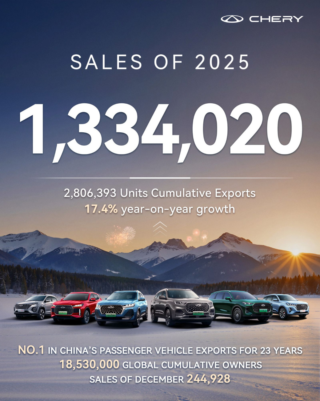 มร. จิม ลี ผู้อำนวยการบริหารแบรนด์ เชอรี ประเทศไทย กล่าวว่า “ในปี 2568 เชอรี กรุ๊ปได้สร้างความก้าวหน้าอย่างต่อเนื่องใน 4 ด้านสำคัญ ได้แก่ ยอดขายรถยนต์ทั่วโลก การขยายการส่งออก ความสำเร็จของยอดขายยานยนต์พลังงานใหม่ และคุณภาพของผลิตภัณฑ์ที่ได้รับการยืนยันจากรางวัลชั้นนำ อาทิ China Quality Award, ASEAN NCAP และ EURO NCAP ซึ่งทั้งหมดนี้สะท้อนถึงความมุ่งมั่นของเชอรีในการพัฒนาเทคโนโลยีและนวัตกรรมอย่างไม่หยุดยั้ง”