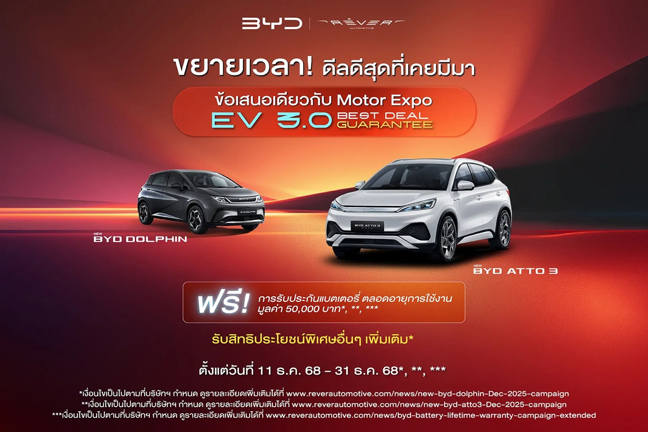 ข้อเสนอดีลดีที่สุดแห่งปีจาก บริษัท เรเว่ ออโตโมทีฟ จำกัด ภายใต้ กลุ่มธุรกิจเรเว่ ผู้จัดจำหน่ายและให้บริการหลังการขายรถยนต์พลังงานใหม่ บีวายดี และ เดนซ่า อย่างเป็นทางการในประเทศไทย จะมีผลถึงวันที่ 31 ธันวาคม 2568 ให้คุณได้เป็นเจ้าของรถยนต์ บีวายดี และ เดนซ่า ในราคาพิเศษที่สุด โดยในปี 2569 ที่มาตรการ EV 3.0 สิ้นสุดลง ราคาจำหน่ายรถยนต์ไฟฟ้าในประเทศไทย จำเป็นที่จะต้องปรับขึ้นไปอยู่ในระดับที่สูงกว่าราคาในปัจจุบัน
