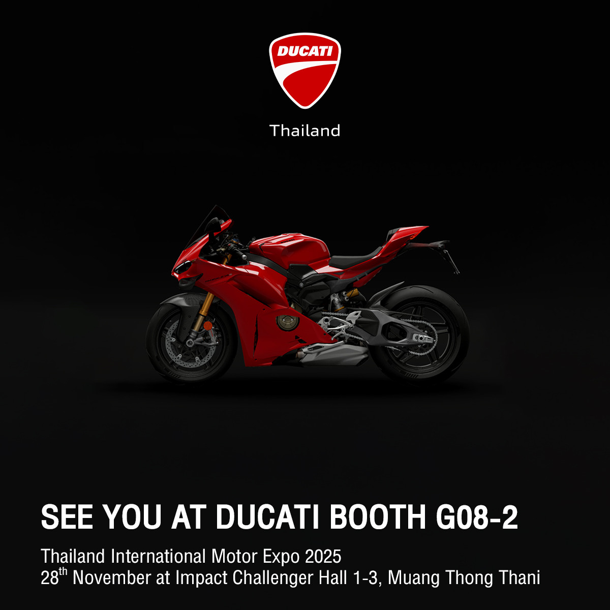 “ดูคาติ ประเทศไทย” (Ducati Thailand) ภายใต้การบริหารของบ้านหลังใหม่ บริษัท เอเอเอส โมโต โครเซ่ จำกัด เชิญสาวกความแรงสัมผัสโมเมนต์ประวัติศาสตร์กับการกลับมาครั้งสำคัญที่ยกระดับมาตรฐาน แบรนด์ดูคาติให้พรีเมียมสมบูรณ์แบบยิ่งกว่าเดิม ทั้งด้านภาพลักษณ์ ประสบการณ์ และบริการระดับเวิลด์คลาส ภายในงาน Thailand International Motor Expo 2025 ระหว่างวันที่ 29 พฤศจิกายน ถึง 10 ธันวาคม 2568 ณ บูธ ดูคาติ ประเทศไทย G08-2 อาคารชาเลนเจอร์ อิมแพ็ค เมืองทองธานี