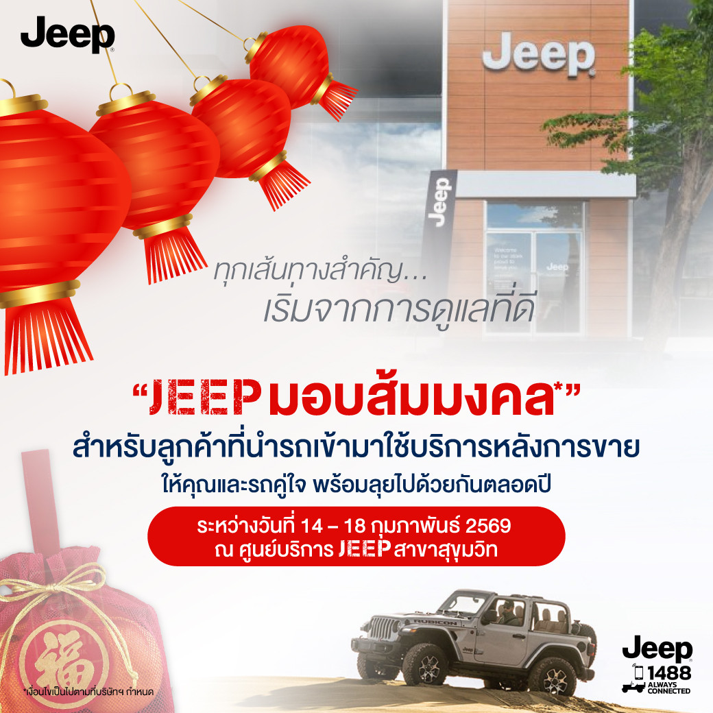 สัมผัสและทดลองขับ ยนตรกรรมพันธุ์แกร่งสัญชาติอเมริกัน มาพร้อมขุมพลังที่สามารถทำได้ทุกสิ่ง ไปได้ทุกที่ ในงาน ‘Golden Harmony: Love, Prosperity & Future Mobility’ ระหว่างวันที่ 14-18 กุมภาพันธ์ 2569 ที่โชว์รูมพร้อมศูนย์บริการครบวงจร จี๊ป ไลอ้อน ออโต้โมบิล สุขุมวิท