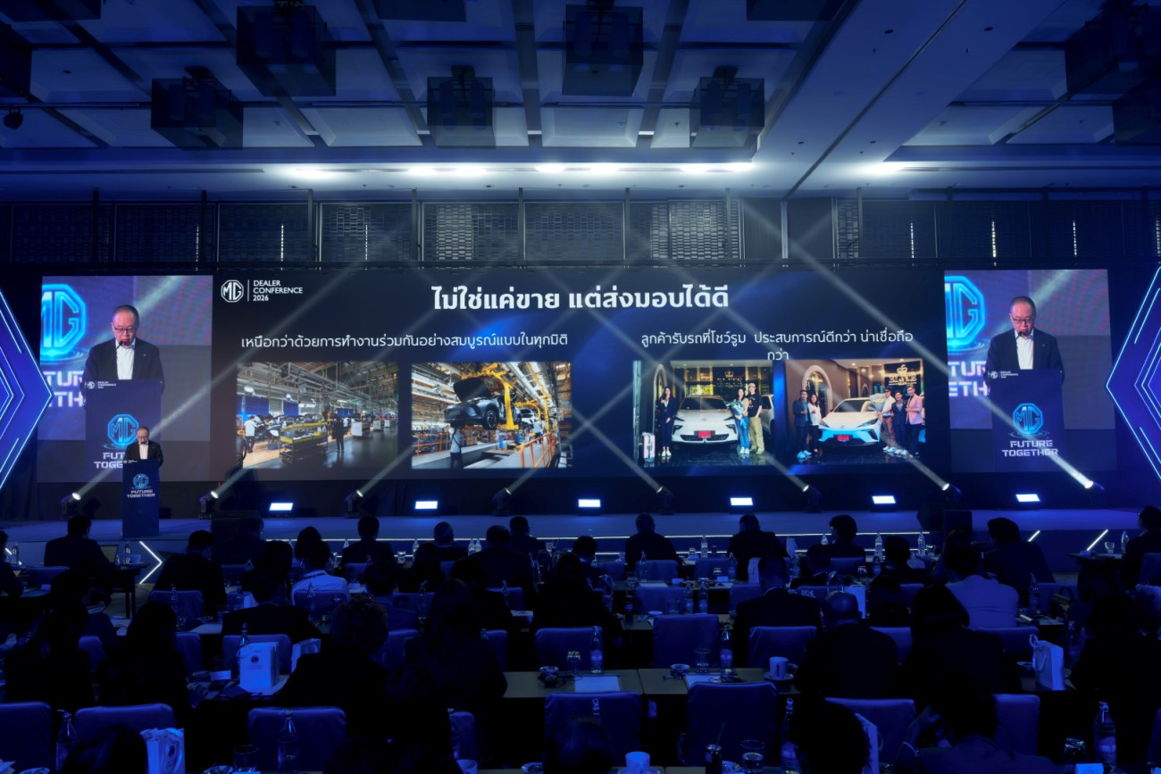 บริษัท เอสเอไอซี มอเตอร์ – ซีพี จำกัด และ บริษัท เอ็มจี เซลส์ (ประเทศไทย) จำกัด ผู้ผลิตและผู้จำหน่ายรถยนต์เอ็มจีในประเทศไทย แถลงความสำเร็จด้วยยอดขายรวมในประเทศไทยอยู่ที่ 27,007 คัน คิดเป็นสัดส่วนการเติบโตที่ 57% และก้าวขึ้นสู่อันดับ 5 ของตลาดรวม กำหนดทิศทางแบรนด์และกลยุทธ์การตลาดในประเทศไทย ภายในงาน “MG DEALER CONFERENCE 2026” พร้อมต่อยอดยกระดับแบรนด์ทุกมิติทั้งการนำเสนอผลิตภัณฑ์ยานยนต์รุ่นใหม่ ทั้งเครื่องยนต์ไฮบริดและไฟฟ้าด้วยนวัตกรรมและเทคโนโลยีล้ำสมัย ที่จะเปิดตัวภายในงาน Bangkok International Motor Show 2026 ดันมาตรฐานการขายและบริการหลังการขายทุกโชว์รูม ตอกย้ำความมั่นใจให้กับลูกค้ารถไฟฟ้าด้วยการรับประกันคุณภาพแบตเตอรี่แรงเคลื่อนสูง ชุดมอเตอร์ขับเคลื่อน และชุดควบคุมมอเตอร์ขับเคลื่อนตลอดอายุการใช้งาน (LIFETIME WARRANTY) พร้อมตั้งเป้าครองส่วนแบ่งทางการตลาด 5% และต่อยอดการไปสู่เป้าหมาย 30,000 คัน อย่างแข็งแกร่งในปีนี้