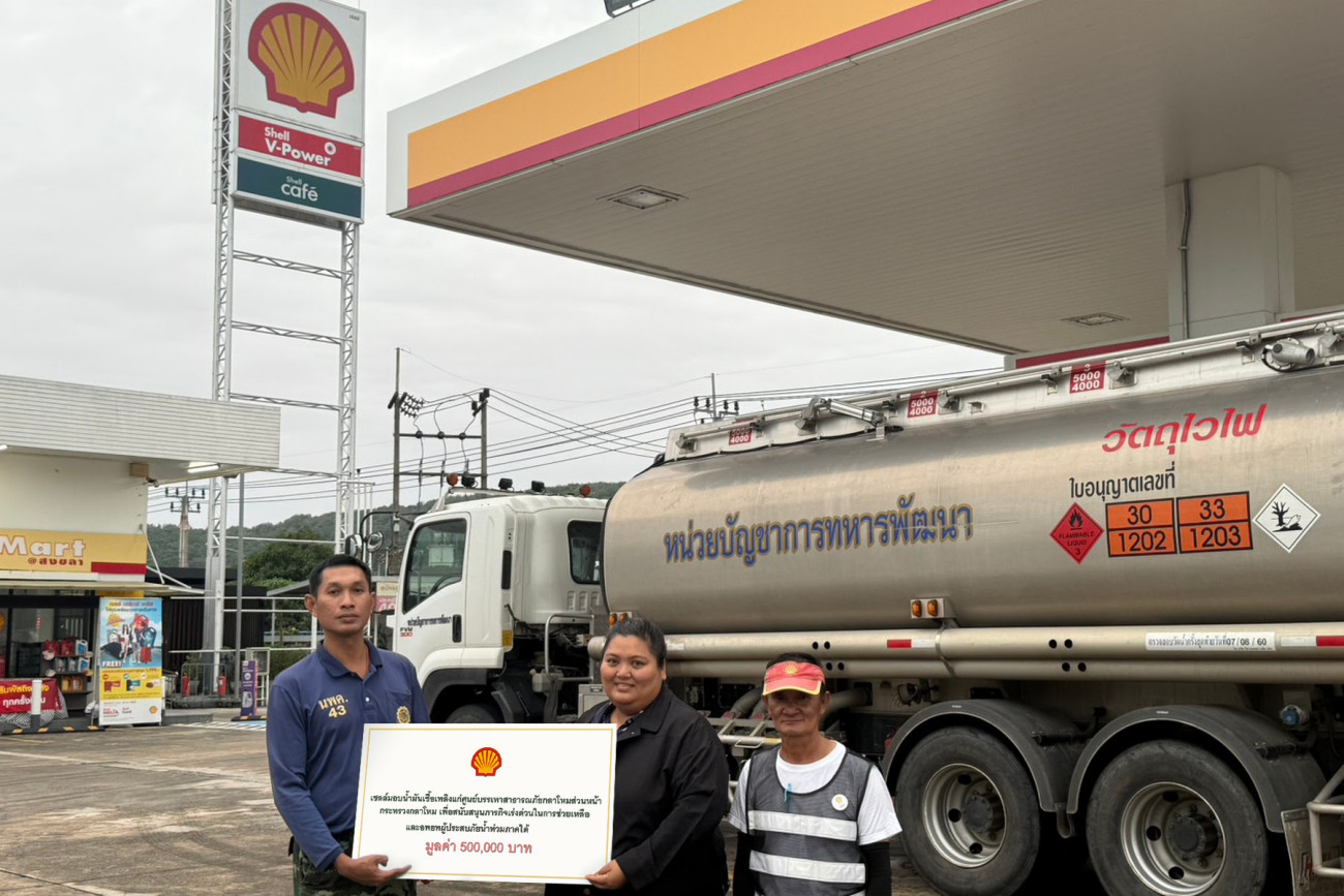 เชลล์เร่งสนับสนุนภารกิจช่วยเหลือผู้ประสบภัยภาคใต้ มอบน้ำมันเชื้อเพลิง มูลค่า 500,000 บาท แก่ศูนย์บรรเทาสาธารณภัยกลาโหมส่วนหน้า กระทรวงกลาโหม