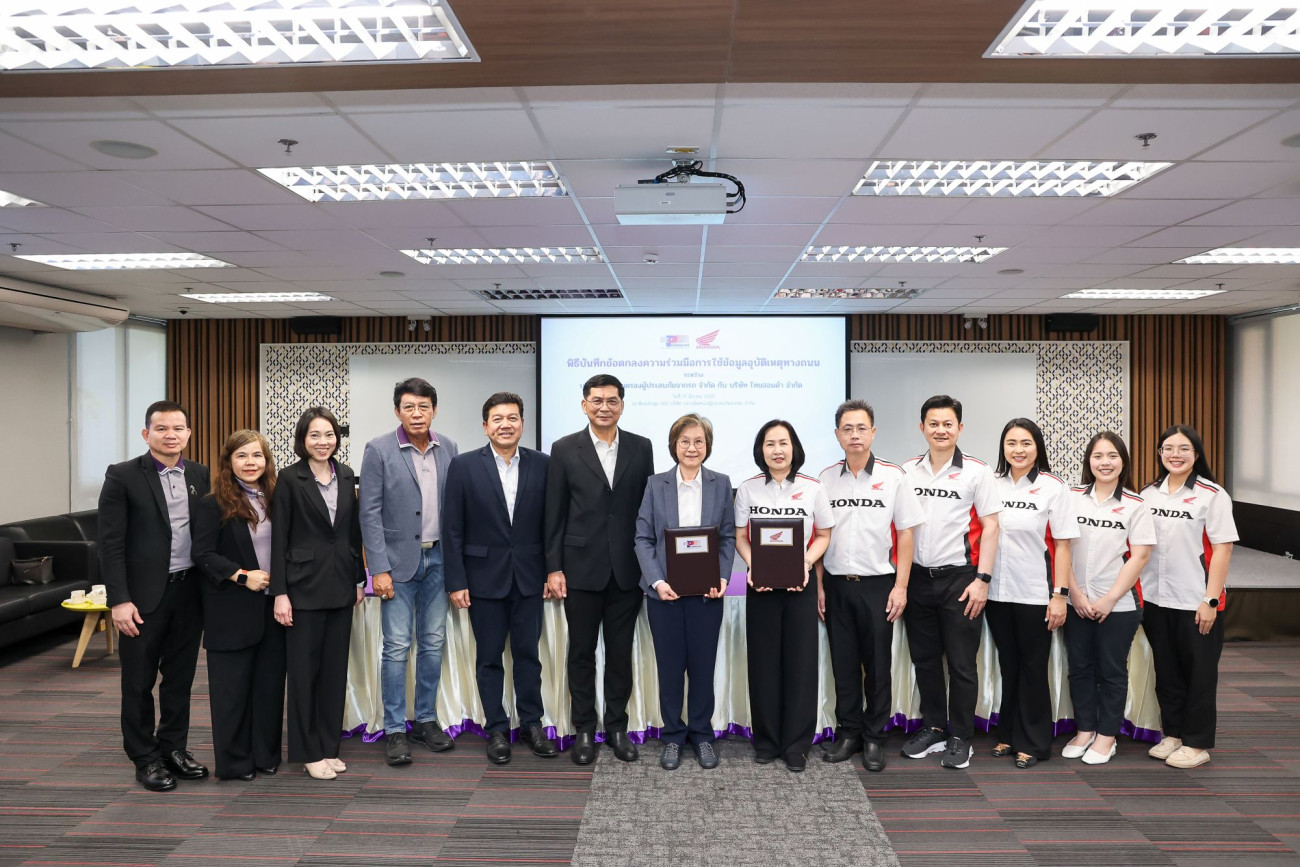 บริษัท ไทยฮอนด้า จำกัด ผู้ผลิตและจัดจำหน่ายรถจักรยานยนต์และเครื่องยนต์อเนกประสงค์ฮอนด้าในประเทศไทย เดินหน้าสานต่อพันธกิจด้านความปลอดภัยทางถนน ด้วยการลงนามบันทึกข้อตกลงความร่วมมือ (MOU) ร่วมกับ บริษัท กลางคุ้มครองผู้ประสบภัยจากรถ จำกัด เพื่อยกระดับการใช้ “ข้อมูลอุบัติเหตุทางถนน” ให้เกิดประโยชน์เชิงลึก ผ่านการนำข้อมูลมาวิเคราะห์หา “สาเหตุหลัก จุดเสี่ยง และพฤติกรรมการเกิดอุบัติเหตุ” อันจะนำไปสู่การพัฒนาแนวทางป้องกันที่ตรงจุด และช่วยลดอัตราการเสียชีวิตจากการใช้รถจักรยานยนต์ในประเทศไทยได้อย่างเป็นรูปธรรม