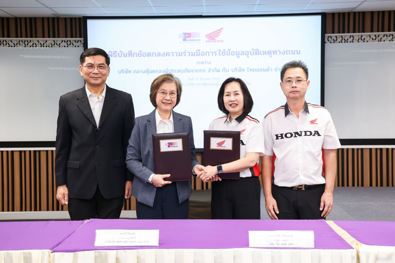 ในการนี้ นางสาวิตรี แก้วพวงงาม กรรมการบริหาร บริษัท ไทยฮอนด้า จำกัด เป็นตัวแทนร่วมลงนามกับ นางสาวพรรณี ปิติกุลตัง กรรมการผู้จัดการ บริษัท กลางคุ้มครองผู้ประสบภัยจากรถ จำกัด เมื่อวันที่ 17 มีนาคม 2569 ณ ห้องประชุม 501 บริษัท กลางคุ้มครองผู้ประสบภัยจากรถ จำกัด ความร่วมมือครั้งนี้ยังเปิดโอกาสให้เกิดการแลกเปลี่ยนองค์ความรู้และบูรณาการทำงานระหว่างหน่วยงานที่เกี่ยวข้อง ซึ่งจะช่วยต่อยอดไปสู่การออกแบบมาตรการด้านความปลอดภัย การพัฒนาหลักสูตรอบรมทักษะการขับขี่ รวมถึงการสื่อสารรณรงค์ที่ตอบโจทย์พฤติกรรมผู้ใช้รถจักรยานยนต์ในปัจจุบันได้อย่างมีประสิทธิภาพมากยิ่งขึ้น
