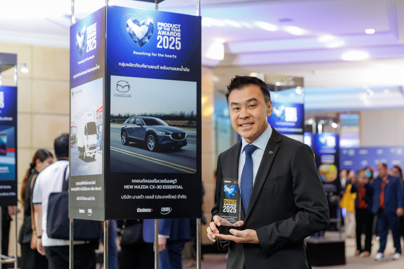 ครอสโอเวอร์เอสยูวีระดับพรีเมี่ยม New Mazda CX-30 Essential คว้ารางวัล Product of the Year Awards 2025 หรือรางวัลสุดยอดสินค้าและบริการแห่งปี จากนิตยสาร Business+ ที่จัดขึ้นเพื่อคัดเลือกสุดยอดสินค้าและบริการแห่งปี ที่ตอบสนองความต้องการของลูกค้า มีความโดดเด่น และสร้างความพึงพอใจให้กับลูกค้า ตอกย้ำถึงแนวทางของบริษัทฯ ต่อการมุ่งมั่นพัฒนานวัตกรรมและเทคโนโลยียานยนต์อันล้ำสมัย ตอบสนองความต้องการของลูกค้าที่มีไลฟ์สไตล์หลากหลาย และส่งมอบประสบการณ์ความสุขในการขับขี่ให้กับลูกค้าได้เป็นอย่างดี โดยพิธีมอบรางวัลครั้งนี้ ได้รับเกียรติจาก ฯพณฯ นุรักษ์ มาประณีต องคมนตรี เป็นประธานมอบรางวัล โดยมี นายภพนิพิฐ จิรวัฒนานนท์ ผู้อำนวยการ ฝ่ายการตลาดและนวัตกรรมดิจิทัล บริษัท มาสด้า เซลส์ (ประเทศไทย) จำกัด เป็นตัวแทนรับมอบฯ ณ ห้องบอลรูม โรงแรมสวิสโฮเต็ล รัชดา กรุงเทพฯ