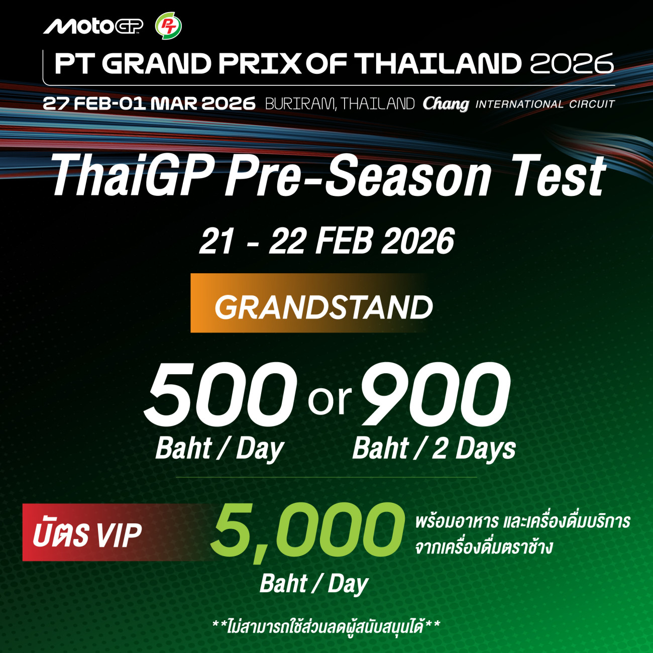 ทั้งนี้ บัตรทั้ง 4 ประเภท เข้าชม Pre-Season Test ได้ฟรี และชม Main Race ได้ทั้ง 3 วัน