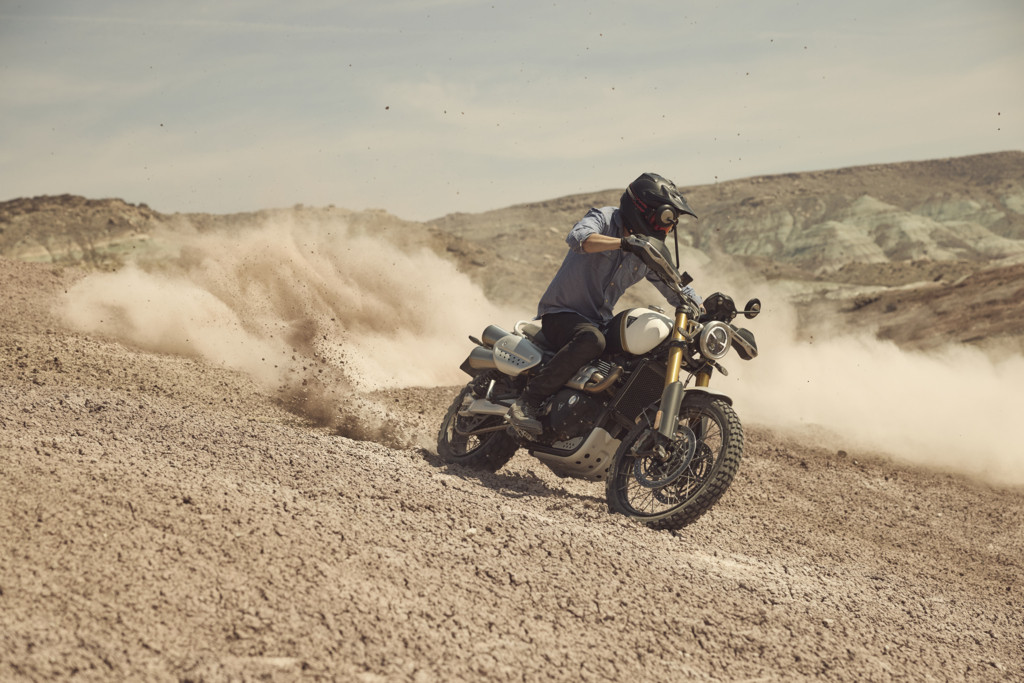ต่อกันด้วย Scrambler 1200 XE รุ่นใหม่ล่าสุด มาพร้อมเครื่องยนต์ Bonneville สองสูบ พละกำลังสูงขนาด 1200 ซีซี มอบพละกำลังสูงสุด 90 แรงม้า และแรงบิดเต็มพิกัด 110 นิวตันเมตร ที่ 4,250 รอบต่อนาที เครื่องยนต์ตอบสนองทันใจ มอบทั้งความเร้าใจและการควบคุมที่ง่ายดายในทุกสภาพถนน ด้านรูปลักษณ์โดดเด่นในทุกมุมมอง ตั้งแต่ท่วงท่าที่ทรงพลัง ล้อหน้าขนาด 21 นิ้ว ถังน้ำมันเชื้อเพลิงที่ออกแบบอย่างประณีต ไปจนถึงเบาะยาวลอนคลื่นที่เป็นเอกลักษณ์ เพิ่มความพรีเมียมด้วย ฝาถังสไตล์ Monza ทำจากอะลูมิเนียมแบบขัดเงา สวิงอาร์มชุบอะโนไดซ์ แผ่นป้ายทะเบียนและแผ่นป้องกันอ่างน้ำมันเครื่องอะลูมิเนียม รวมถึงตราสัญลักษณ์ขัดเงาบ่งบอกถึงความประณีตในทุกส่วน